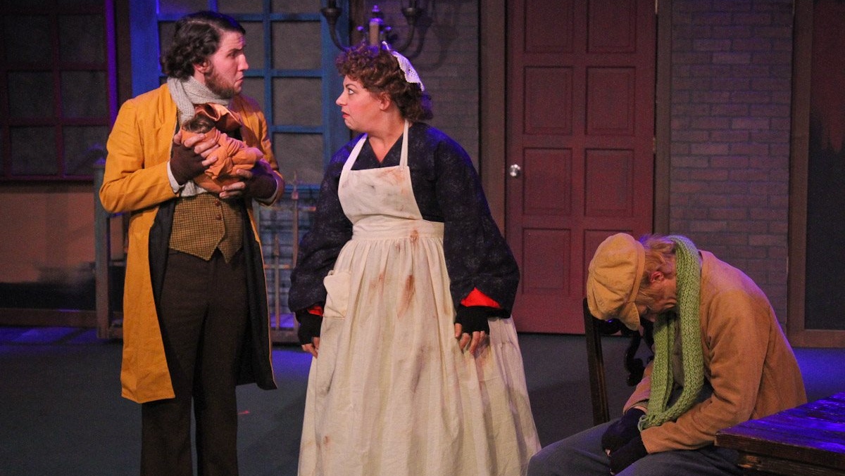 Christopher Durang’s musical parody of Dickens’ Christmas Carol—with detours through the worlds of Oliver Twist, The Gift of the Magi and It’s a Wonderful Life—has not aged well since its 2002 premiere. Full of political and pop-culture references that might have seemed dated even then (Enron? Leona Helmsley? TV’s Touched by an Angel?), it follows Ebenezer Scrooge (Kit Grimm) on his Christmas Eve journey through his past as guided by an incompetent ghost (Debra Harvey, alternating with Serena Flores). Their visit to the Cratchit household reveals an angry and bitter Mrs. Bob Cratchit (Tika Moon), who’s fed up with her milquetoast husband (Conor Woods), their 20 children—most of whom live in the root cellar—and her lot in life.