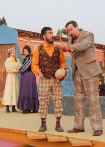 Colorful Victorian-era costumes (that’s when it’s set) by Pamela Johnson add to the jovial tone of the show and there’s some excellent physical comedy by Wright and Coughlin as the put-upon servants.