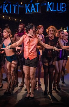 Cliff Bradshaw (Lucas Brandt) is an American traveling through Europe as he attempts to write the great American novel. His train mate Ernst Ludwig (Mark Robinson) sets him up at the boarding house of Fräulein Schneider (Mary Gannon Graham) whose other boarders include members of the chorus of the Kit Kat Club. Cliff meets Sally Bowles (Alia Beeton), the “headliner” at the club with whom he’s soon sharing his room. Fräulein Schneider, who’s becoming adept at looking the other way at certain situations, finds herself being courted by Herr Schultz (Michael Van Why), the local grocer. The future of these relationships grows gloomier as the cloud of National Socialism forms over Germany.