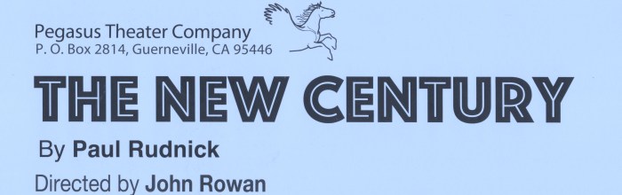 This season Pegasus brings Paul Rudnick’s The New Century to the Mt. Jackson Masonic Lodge in Guerneville. Rudnick (I Hate Hamlet, In & Out) has taken a collection of comedic one-acts and put them together for this show. It’s basically three monologues and a “wrap up” scene.