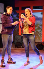 The play hopscotches around from such places as a living room to a mortuary to an airport to Nepal to a hospital waiting room and accomplishes this in Left Edge’s intimate theatre with a combination of great technical elements. Argo Thompson’s minimalist set and vibrant projection design are really enhanced by April George’s lighting and Joe Winkler’s sound design.
