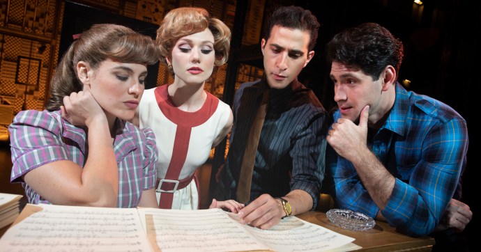 Douglas McGrath, better known for his screenplays (Woody Allen’s Bullets over Broadway, Emma) had a lot of material to work with here and does a fine job encapsulating a life in two hours. His book balances the relationship of King and Goffin with that of Weil and Mann almost to the point of the show really being about both. Most amazingly, he’s written a script that features two music industry veterans (Kirschner and Lou Adler (John Michael Dias) who do not come off as weasels.