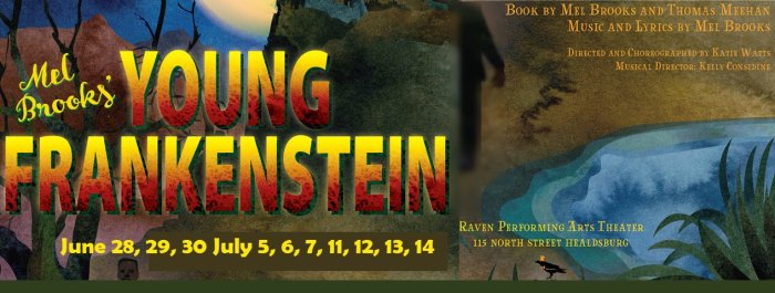 ‘Young Frankenstein’ runs through July 14 at the Raven Performing Arts Theater, 115 North St., Healdsburg. Friday–Saturday, 8 pm; Sunday, 2 pm; Thursday, July 11, 8 pm. $10–$35. 707.433.6335. raventheater.org.