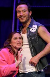 The Urine Good Company, headed by the dastardly Caldwell B. Cladwell (Tim Setzer), seeks another hike in their outrageous fees. This doesn’t sit well with Amenity attendant Bobby Strong (Joshua Bailey) who’s soon fomenting rebellion. Complications ensue when Bobby falls in love with Cladwell’s daughter Hope (Julianne Thompson Bretan). Will their love be enough to break the stranglehold her father has on everyone’s bladder? Well, as Officer Lockstock (David Yen) makes clear in his introduction, this isn’t a “happy” musical.