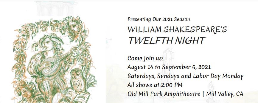 ‘Twelfth Night’ runs Saturday–Sunday through September 5 with a special Monday, September 6 (Labor Day) performance at the Old Mill Park Amphitheater, 352 Throckmorton Ave., Mill Valley. All shows 2pm. Free. curtaintheatre.org
