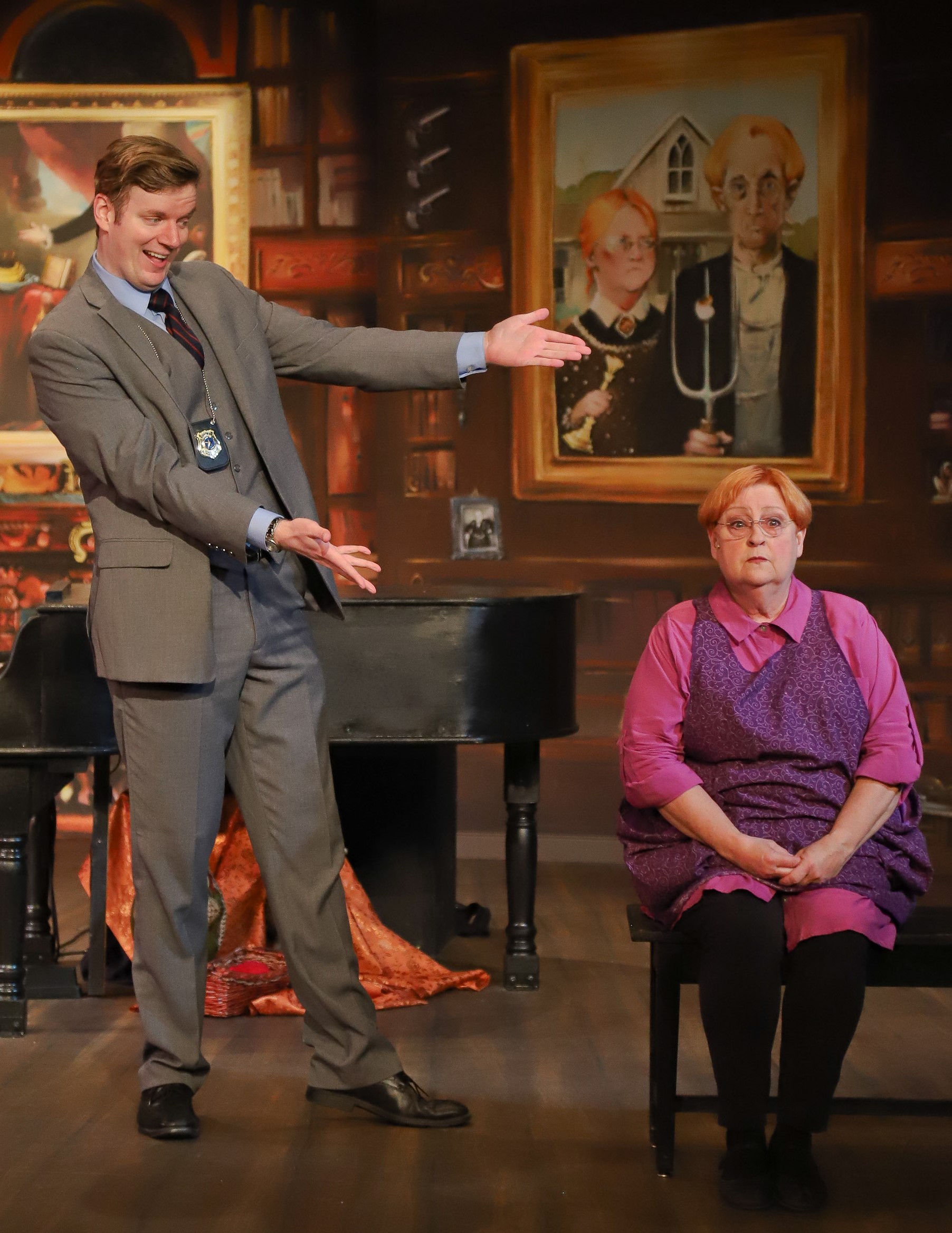 First on the scene is Officer Marcus Moscowicz (Trevor Dorner), a detective wanna-be who’s sure a promotion awaits him if he solves the case. All he has to do is musically interrogate all the guests/suspects and figure out whodunnit.