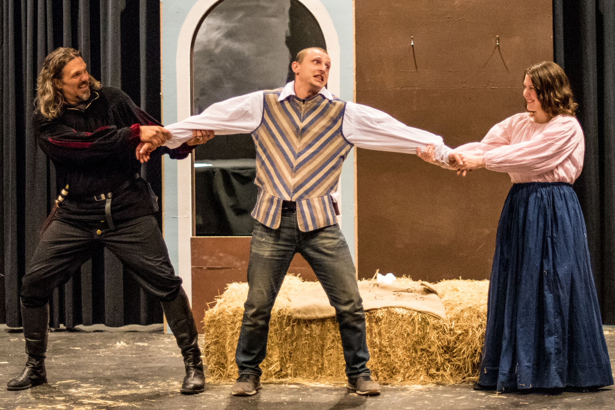 The set consists mostly of a couple of bales of hay used in a very utilitarian fashion so it’s Holly Werner’s costuming that provides a sense of time and place.