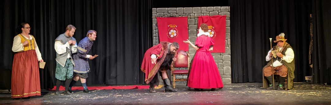 Will Shakspere (Connor O’Shaughnessy) seeks a more exciting and fulfilling life than that of a simple country farmer, much to the consternation of his wife Anne Hathaway (Nora Summers, and not that one.) He dreams of the theatrical life and soon finds himself in the company of John Hemige (Rusty Thompson) & Henry Condel (Dan Stryker) and their merry band of players (Erin Lane, Lindsay John).