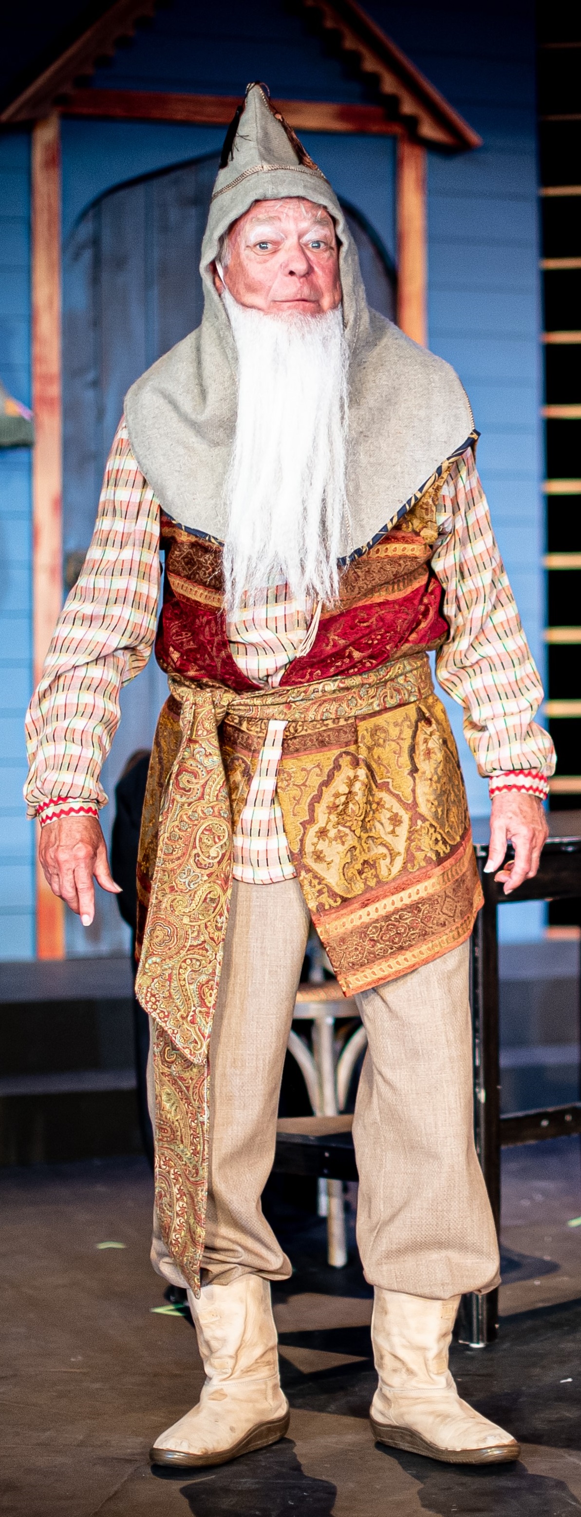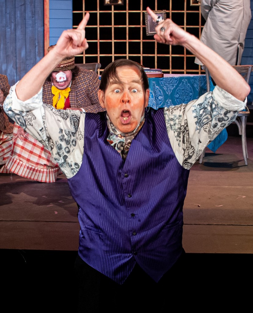 A ne’er do well named Hlestekov (Michel B. Harris) is mistaken for the inspector, and he’s more than happy to accept the bribes that repeatedly come his way from the town’s denizens. If money won’t do it, perhaps the amorous advances of the Mayor’s wife (Pamela Ciochetti) or daughter (Hunter Candrian-Velez) will. Hlestekov plays everyone against each other as greed and the instinct for self-preservation take hold.