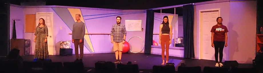 Set in Baker’s favorite fictional locale of Shirley, Vermont, in what appears to be a small dance room, Marty (Heather Richardson) is leading an “Adult Creative Drama” class. Enrollment in the class is small with just four students in attendance including Marty’s husband James (Ray Martin). Other students include Schultz (Rob Garcia), a newly-divorced carpenter tip-toeing out into the social world again, Theresa (Sabina Beachdell), who’s retreated from the super-competitive acting world of New York, and Lauren (Shayla Lawler), a high school junior looking to get a leg up on the competition for the lead role in her high school musical.