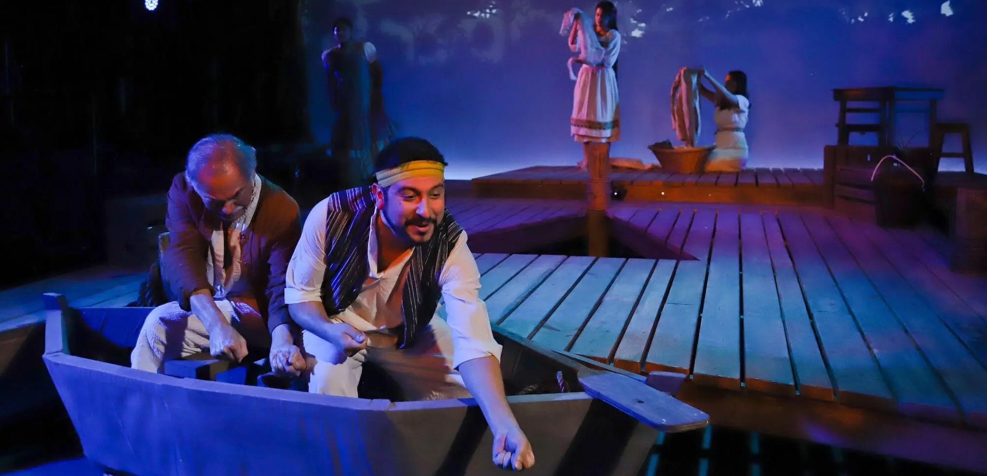 Duarte and the sisters’ father Señor Costa (Daniel Villalva) are out casting their nets for the wedding feast when they discover an unconscious man – fully clothed in a Panama suit and with a bandaged head – entangled in their net. They bring him back to the village where the sisters and their mother (Jannely Calmell) revive him. He identifies himself as Moises (Terrance Smith) and is immediately taken with Helena. After a fast courtship, Moises proposes immediate marriage. As a matter of fact, he must be married by sundown. Helena hesitates just long enough for Belmira to move in. Belmira has found a better way out of the village, or so she thinks.