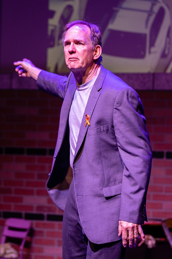 Each scene is an emotional gut punch. The two that were most impactful were “Right Place at the Right Time” (adapted by Teri Amara Boero, performed by Katie Watts-Whitaker), a daughter’s story of the loss of her teacher father and the purpose it brought to her life, and “Nick” (adapted by Scott Lummer, performed by Craig Peoples), a father’s story of the loss of his son and his inability to offer his forgiveness.