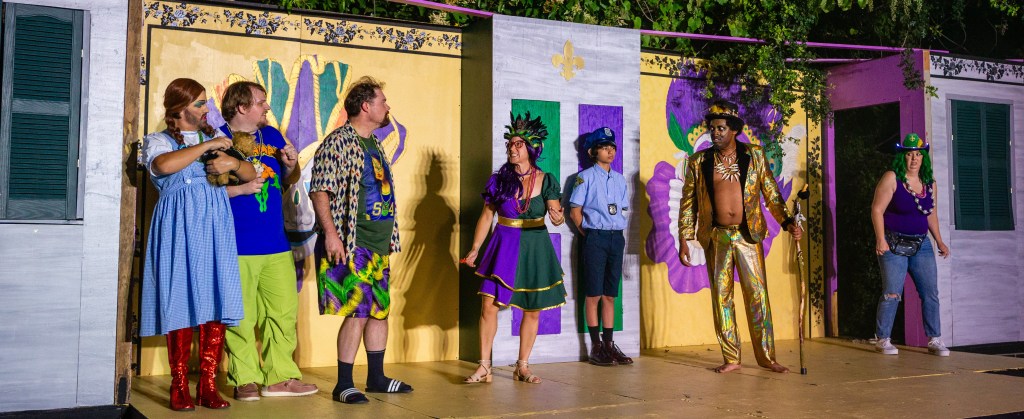 Shakespeare purists beware as director Steven David Martin transplants the setting from ancient Greece to modern-day New Orleans during Mardi Gras where the antics of two – count ‘em – two sets of twins, originally separated by shipwreck (of course), lead to accusations of theft, infidelity, and demonic possession.