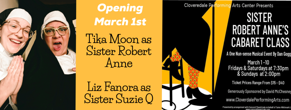 My guests on the February 22 “Theatre Thursday” segment on The Drive on 95.5 were Robert Zelenka and Tika Moon from the Cloverdale Performing Arts Center production of Sister Robert Anne’s Cabaret Class. The show opens in Cloverdale on March 1 and runs through March 10.