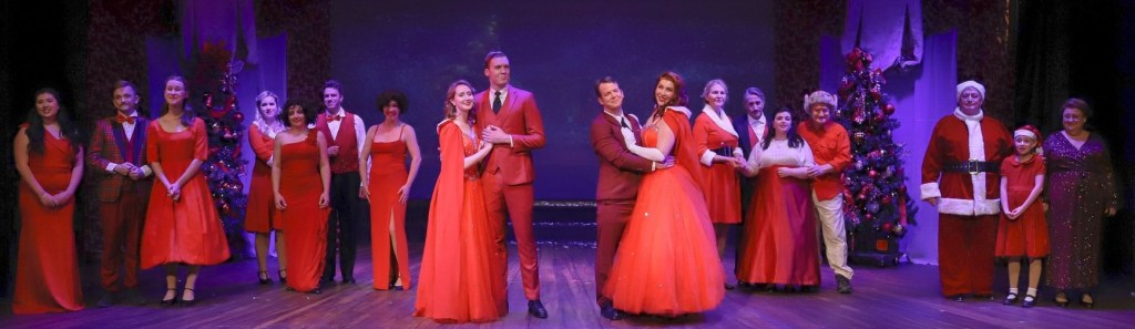 GI’s Bob Wallace (Trevor Hoffman) and Phil Davis (David Bradbury) go from entertaining the troops of the 151st division at the close of WWII to Broadway superstardom ten years later. Headed to Florida for the winter to work out their next musical extravaganza, they’re side-tracked by the sister act of Betty and Judy Haynes ( Ella Park, Caroline Flett). They end up at a snowless ski resort in Vermont owned by their former commander General Waverly (Dwayne Stincelli). There’s nothing but room at the inn so Bob and Phil decide to help their old leader out by mounting a show there.