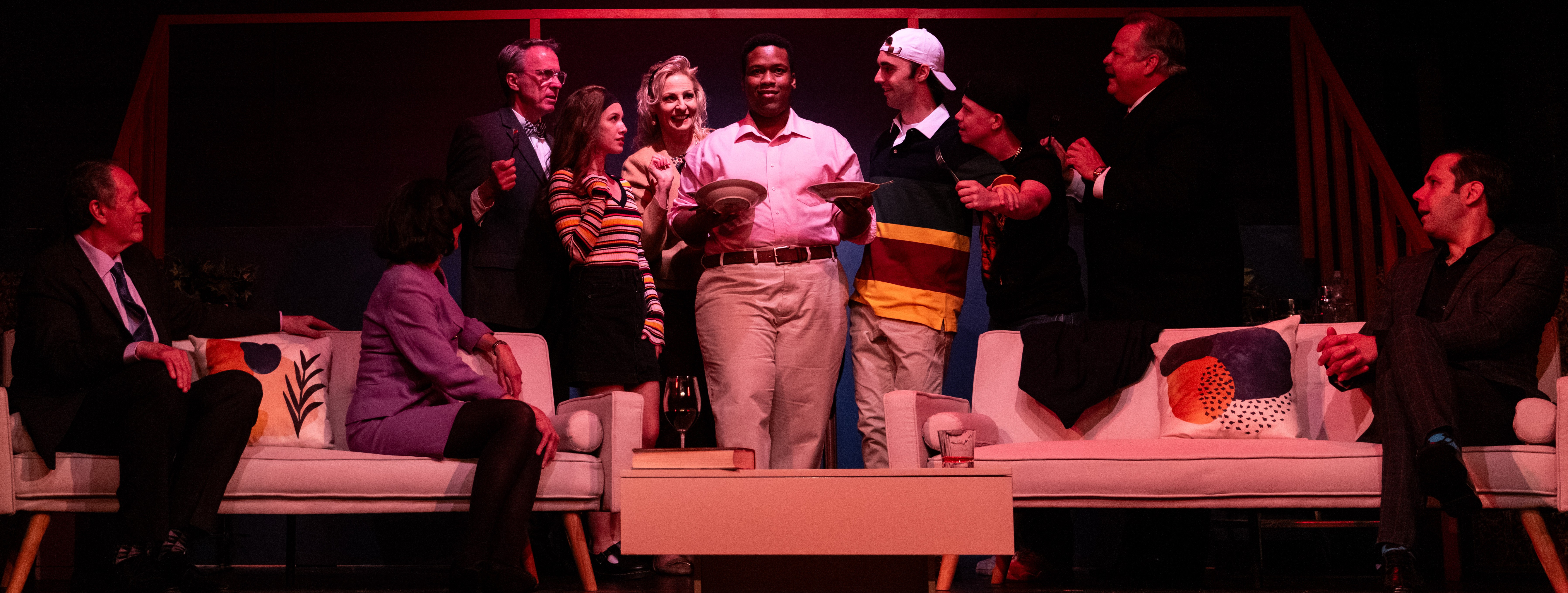 Private art dealer Flan Kittredge (Larry Williams) and his wife Ouisa (Mary Samson) are entertaining an out-of-town guest (Lukas Raphael) with the hopes of his joining a syndicate to make a substantial investment in a piece of art. Their evening is interrupted by the arrival of Paul (Jonathen Blue), a young man claiming to have just been mugged who turns to the Kittredges for help, as he is a friend of their children. He’s soon regaling the three with tales of his life as Sidney Poitier’s son, cooking them dinner, and assuring them he can get them jobs as extras on the film his father is coming to town to direct. Paul is invited to spend the evening at the Kittredges.