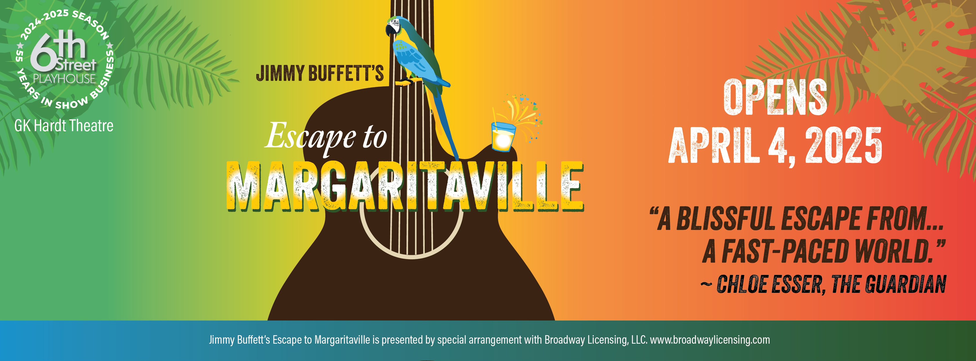 ‘Jimmy Buffett’s Escape to Margaritaville’ runs through April 19 in the GK Hardt Theatre at 6th Street Playhouse, 52 W. Sixth Street, Santa Rosa. Thurs-Sat, 7:30pm; Sat & Sun, 2pm. $29–$56. 707.523.4185. 6thstreeetplayhouse.com