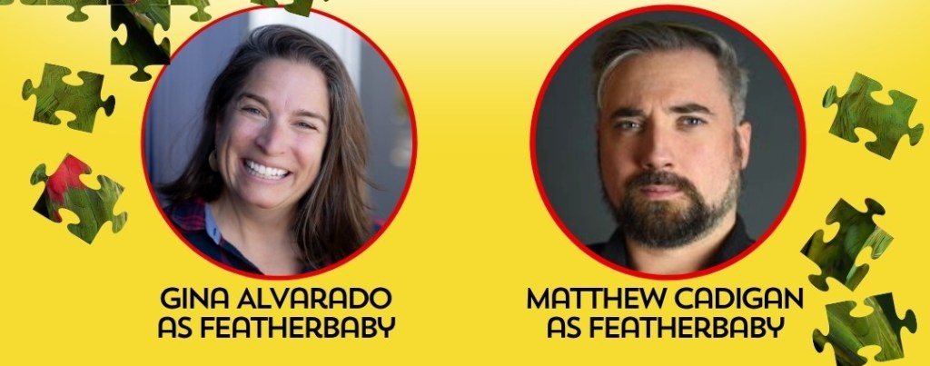 Director Skylar Evans – “One of the many beauties of Featherbaby is that it can be played by so many different types of actors. In addition, how many productions have we seen recently needing to cancel/delay due to an actor being sick? Based on those factors, I made the request to double cast the role with Gina Alvarado and Matt Cadigan: to share and have each other’s back while also showing the different interpretations and perspectives two actors could bring.”