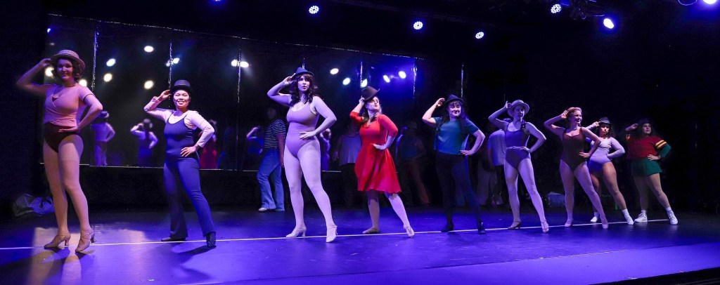 A Chorus Line opens with a backstage look at dozens of dancers trying out for a part in a new show. The live music is energizing and brassy; the director of the audition is pushy and demanding. After dance eliminations, only seventeen remain onstage. They’re exhausted and nervous as they urgently sing “I Hope I Get It” as they await the next cut. Ginger Beavers, 6th Street’s Musical Director, is in the orchestra pit with a seven-piece band to highlight their every note and punctuate every emotion.