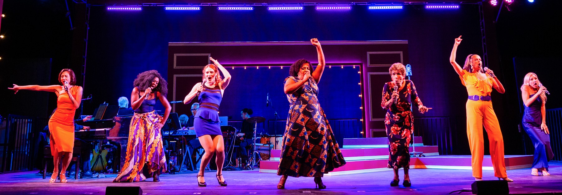 A live onstage band is energetically conducted by Susan Draus, who conceived the show along with Eric Jackson, the show’s Director. The music both highlights and in a few cases overwhelms the voices of the performers. Good thing the band is in fine tune!