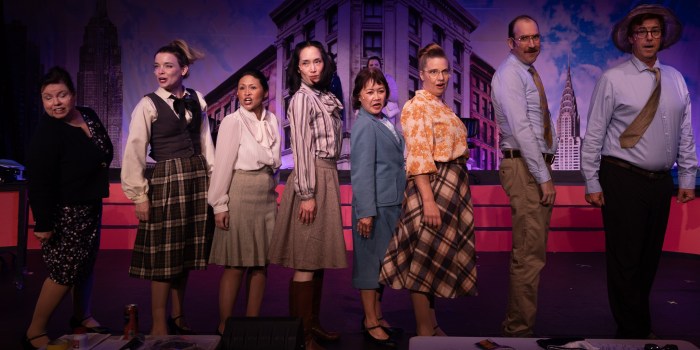 Novato Theater Company shows off more than a dozen knockout singers and dancers in this high-spirited show. In Act II, Violet’s determination and fierceness to do her job draws Joe, played by Nick Kealy, to invite an office romance. The two sing a lovely duet “Let Love Grow” just before Judy gives a powerhouse rendition of “Get Out and Stay Out” to her ex who dumped her.