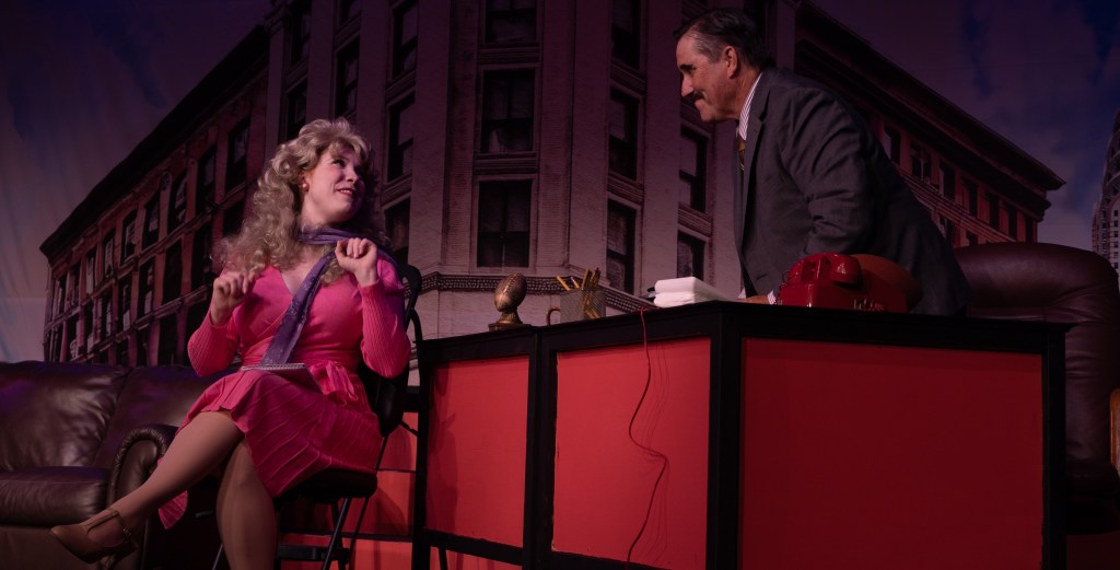 Pat Barr owns the stage as Hart, the male chauvinist so convincing we almost want to boo him. Dismissive and egotistical, this self-styled sexist sets his lusting eyes on Doralee, his voluptuous and adamantly virtuous secretary. Bethany Cox’s Doralee is hilarious as she rebuffs Hart’s advances with a feisty spirit. Dolly wrote Doralee’s lament “Backwoods Barbie” as one of many original songs in the show.