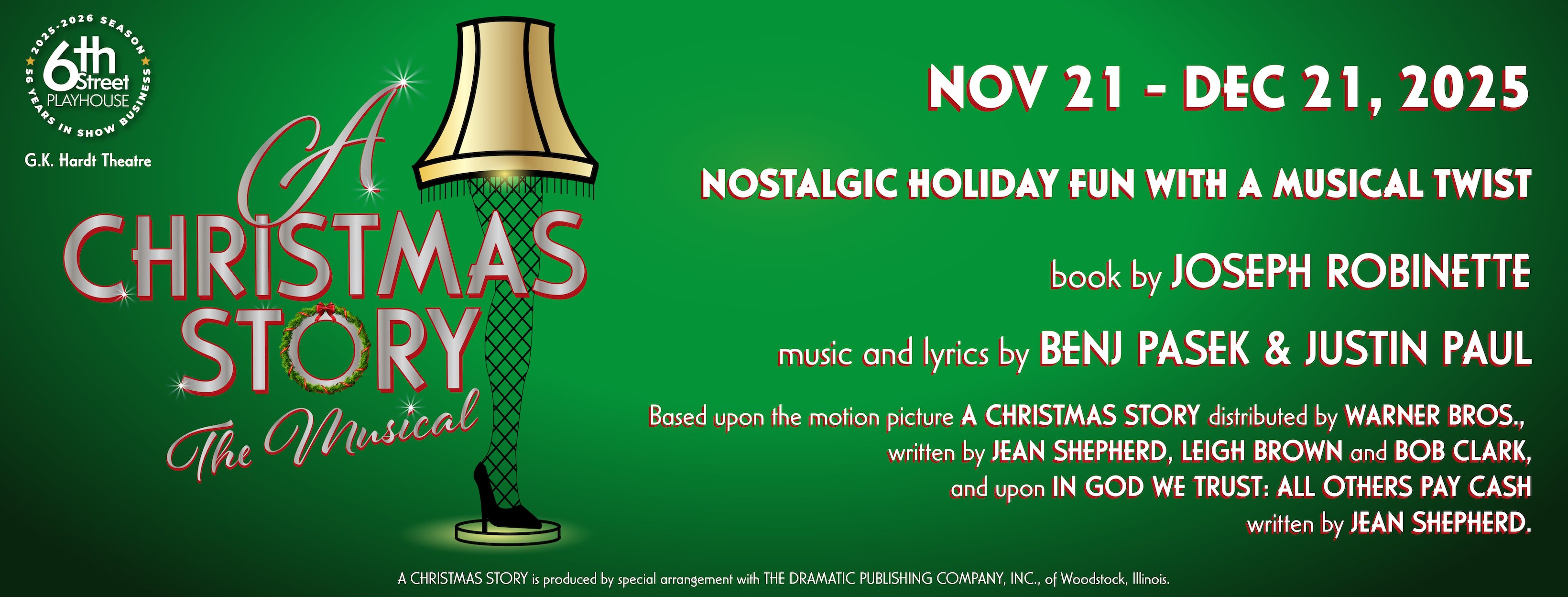 The beloved homespun midwestern characters haven’t changed, brought to life by the Narrator (Anthony Martin.) It’s heartwarming humor with the Parker family and a fishnet-wearing leg lamp written by Jean Shepherd, Leigh Brown, and Bob Clark.