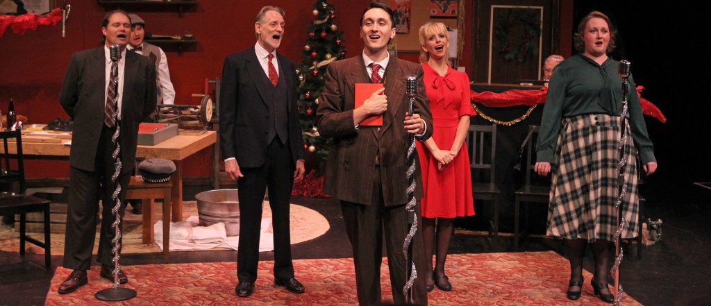 Jenny Hollingworth directed this fast-moving peek backstage. These actors are versatile in voice, ready to pony up to the microphone as different characters. It’s up close and personal in the three-quarters round stage of the Condiotti Studio Theatre, making It’s a Wonderful Life wonderful fun.
