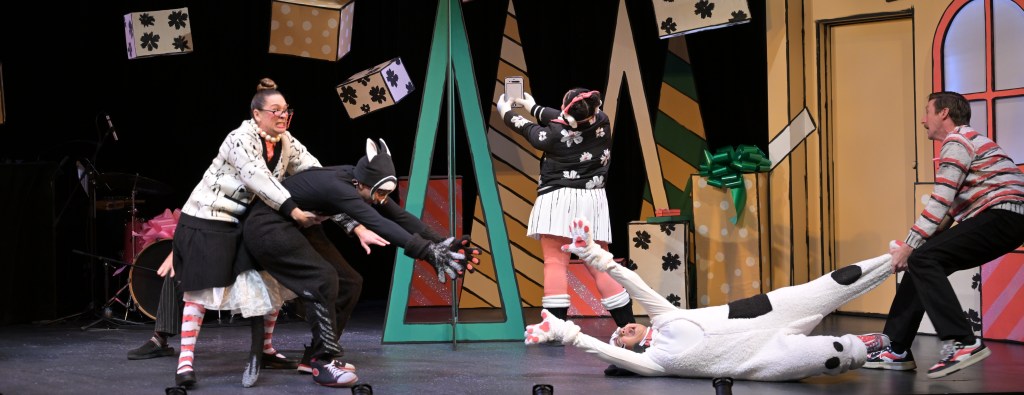 The Gift of Nothing, now running at Marin Theater through Tuesday, Dec. 23, begins on a special day when the residents of the Mutts world celebrate by giving gifts to their friends and families. But Mooch the cat (Jordan Covington) has a problem: what to get the dog that has everything? Thus begins a quest to find the ideal gift for Earl the dog (Amanda Le Nguyen). Based on the book by the same name by Patrick McDonnell, adapted by McDonnell, Aaron Posner, and Erin Weaver, with music and lyrics by Andy Mitton, this is a feel-good, adorable holiday treat for all the littles in your life.