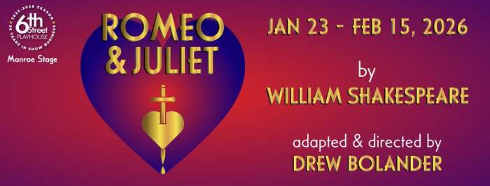 ‘Romeo & Juliet’ runs through February 15 on the Monroe Stage of 6th Street Playhouse, 52 W. 6th Street, Santa Rosa. Fri-Sat, 7:30pm; Sun, 2pm. $27-$48. 707.523.4185. 6thstreetplayhouse.com