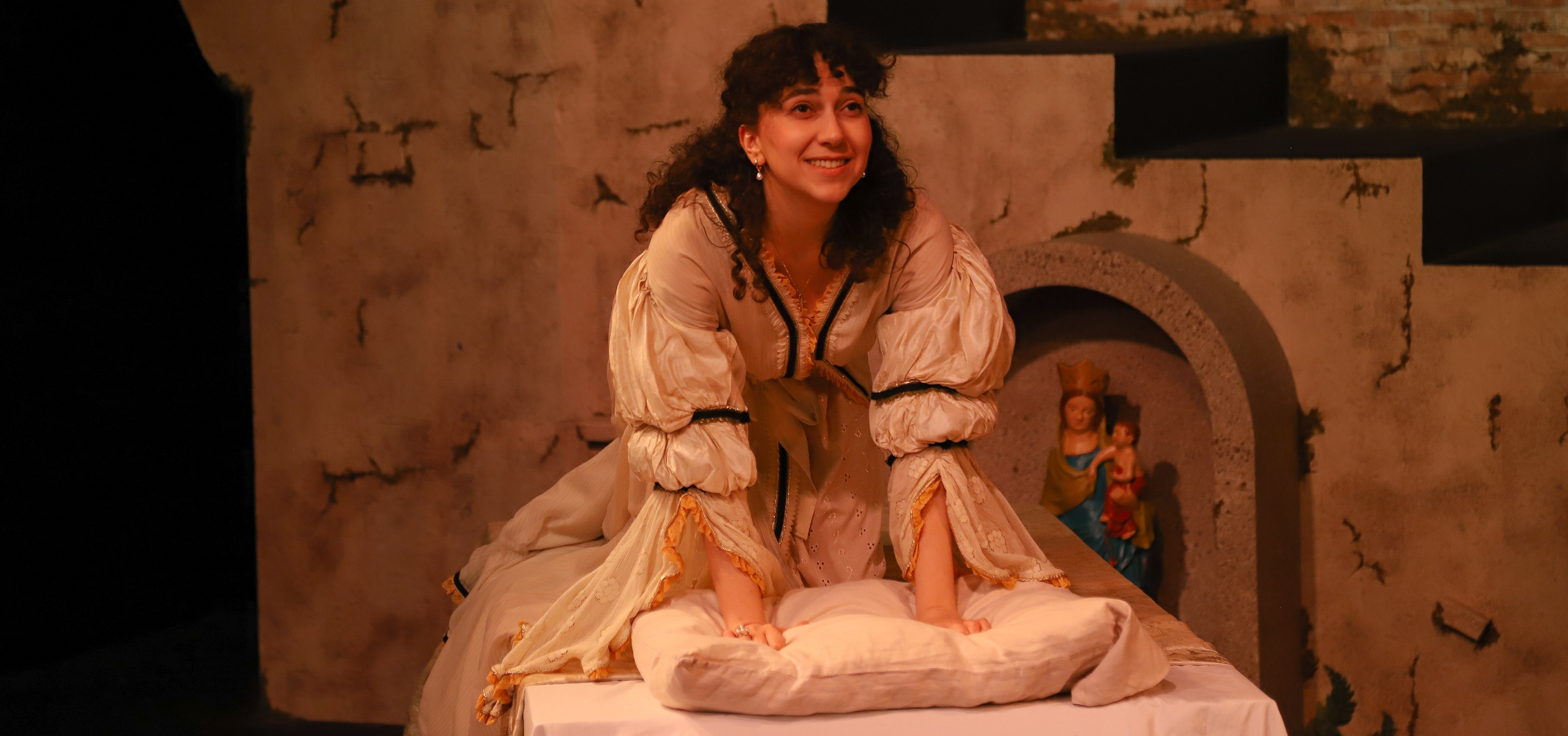Similarly, Tina Traboulsi is an untraditional choice for Juliet. The multi-talented actress approaches the titular character with the deep training of a magnificent character actor, which gives Juliet an oft-missing agency. Her Juliet is realistic, making down-to-earth choices in moments usually played as silly whims.