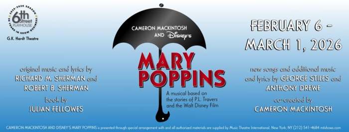 ‘Mary Poppins’ runs through March 7 in the GK Hardt Theater at 6th Street Playhouse, 52 W. Sixth Street, Santa Rosa. Thurs-Sat, 7:30pm; Sat & Sun, 2pm. $32–$56. 707.523.4185. 6thstreetplayhouse.com