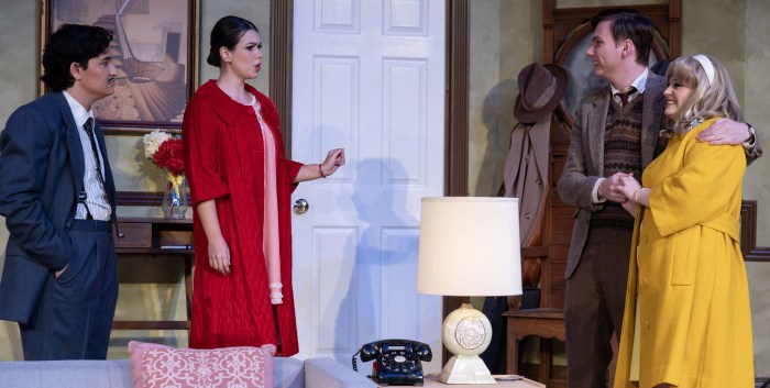 For centuries France has produced such famous playwrights as Molière, Beaumarchais, Rostand, Sartre, and Ionesco and such plays as Tartuffe, The Marriage of Figaro, Cyrano de Bergerac, No Exit, and Rhinoceros. And yet, according to the Guinness World Record organization, the most performed French play in the world is a 1960s sex farce about a swinging Parisian bachelor juggling three fiancées. The play is Marc Camoletti’s Boeing Boeing and the Santa Rosa Junior College Theatre Arts program has a production running in Santa Rosa through March 8.